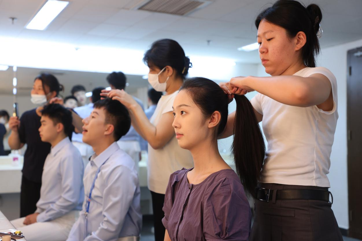 “我参加!”美术学院2024级硕士生杨罗锋收到通知后没有丝毫迟疑。他曾在学校原创话剧《马兰花开》中饰演周光召、小高等角色。在一次演练前的等车间隙,他与同剧组的队员按捺不住激动的心情,自发演起《马兰花开》片段,吸引了很多人围观。在他看来,艺术是一种直抵人心的语言,歌声不仅是旋律,更是历史的回响。用音乐传递伟大抗战精神,能让更多人铭记历史、珍爱和平。