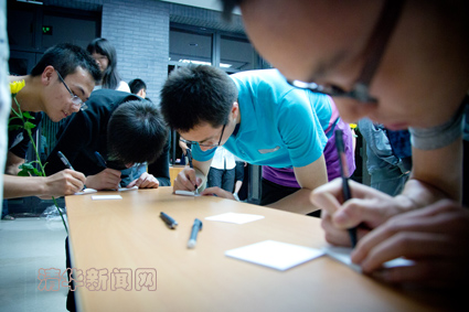 图为前来悼念的同学纷纷将对张光斗先生的哀思写在纸上。学生记者 王皓冉