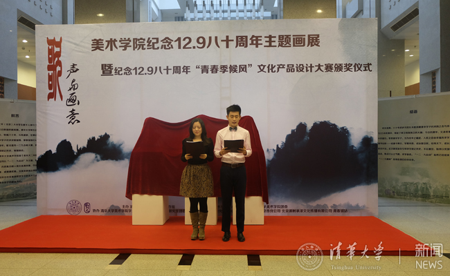 本次开幕式暨颁奖仪式分四部分进行。主持人向到场师生阐释了一二·九历史,并介绍了本次“歌声与画意”主题画展和文化产品设计大赛的主要内容。在场师生代表分别作了精彩发言。在文化产品设计大赛的颁奖环节,教师代表为张展等获奖者颁奖,随后为本次展览揭幕。
