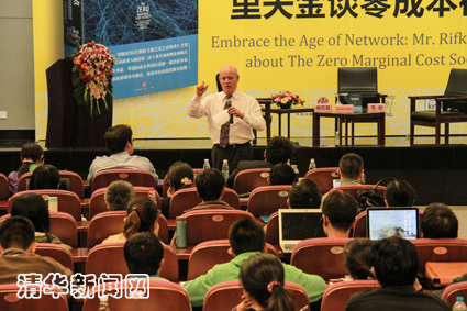 他同时指出,在当下社会,物种灭绝、环境污染等问题层出不穷,只有我们找到更好的技术,才能真正保护环境,实现零边际成本,并且用共享的方式生活,应对气候变化,减少我们带给环境的压力和负担。在未来,我们希望使得75%的能源来自太阳能。再过6年,我们就可以实现廉价的可再生能源利用;25年后,所有人都可以使用物联网生产和消费,实现共享。未来,各中小企业、家庭将建立协同共有方式建立发电的合作社。每个人,每个家庭,将自己生产电进行消费。这并不意味着能源公司的破产。电力公司不是自己发电,而是和成千上万的中小企业和合作社协作,帮助公司找到问题,提升生产效率,不是卖电,而是提高社会生产率。