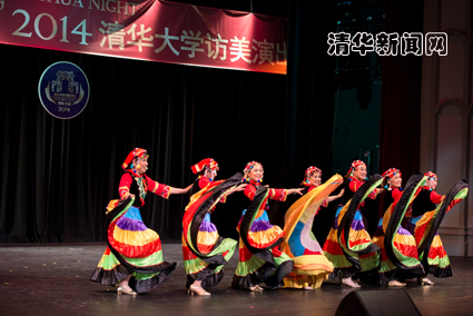 独具民族特色的民乐合奏《赛马》、中阮独奏《云南回忆第三乐章》和弦乐四重奏《梁祝》赢得了满堂喝彩;独唱曲目《春天的芭蕾》《没离开过》,以及女声二重唱《为祖国干杯》,分别以细腻优雅、率性洒脱、大气自然的表演,将音乐之美注入了听众的心灵深处;女子群舞《桃夭》和男子群舞《库马拉随想》分别展示了中国女子的温婉和男子的豪迈,令观众大饱眼福、啧啧赞叹。除了学生艺术团的节目外,洛杉矶当地的清华校友也在百忙中准备了精彩的节目,合唱《茉莉花》《同一首歌》和群舞《欢乐的火把节》反响热烈。最终,在一首热烈欢快的《相亲相爱》中,演员们进行了精彩的谢幕。