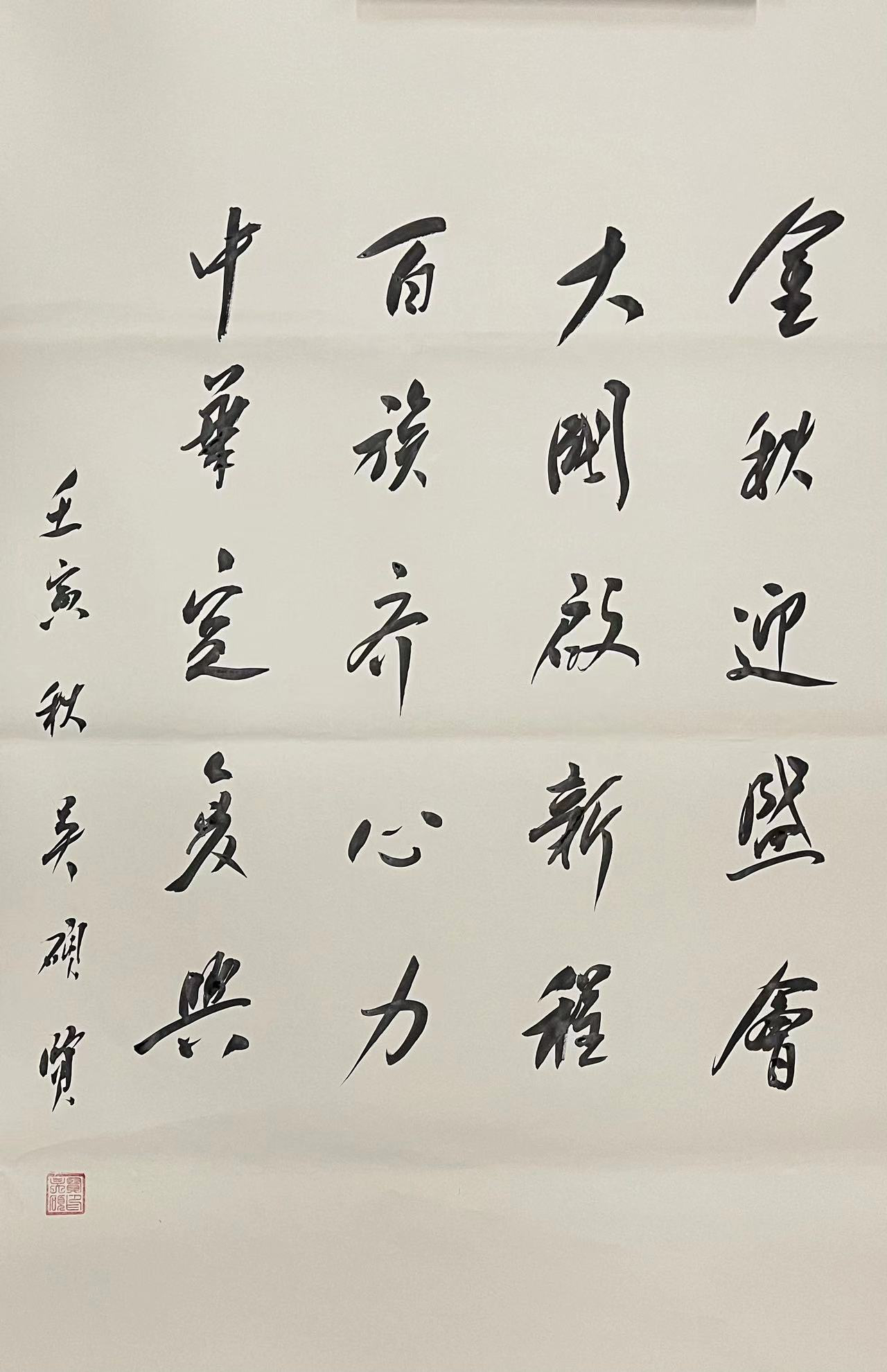 建筑学院1965级校友、中国科学院院士吴硕贤凌晨五点起来开始创作,半小时内一气呵成写成一首五绝,表达“百族齐心力,中华定复兴”的坚定信心。